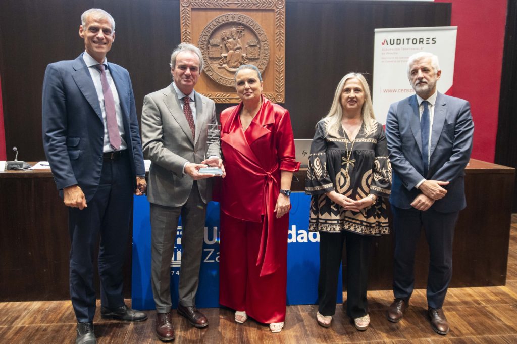 La presidenta de la Agrupación Territorial de Aragón, Lidia Sierra, ha entregado el premio al presidente de la Cámara de Zaragoza, Jorge Villarroya, acompañada por el presidente del Instituto de Censores Jurados de Cuentas de España, Víctor Alió; y el presidente del Instituto de Contabilidad y Auditoría de Cuentas de España (ICAC), Santiago Durán. El acto ha tenido lugar en el Aula Magna del Paraninfo de la Universidad de Zaragoza, con la asistencia de más de un centenar de invitados miembros de la organización, profesionales de la auditoría y representantes de la empresa, las finanzas, la política y el ámbito académico.